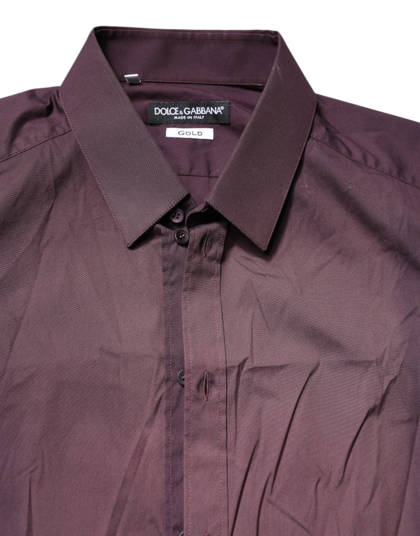 Dolce & Gabbana Burgunderfarbenes Hemd aus Baumwolle GOLD mit langen Ärmeln - IT42 | XL