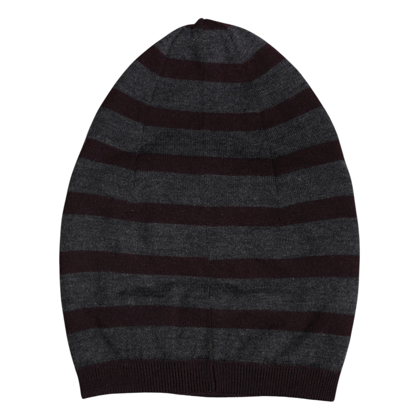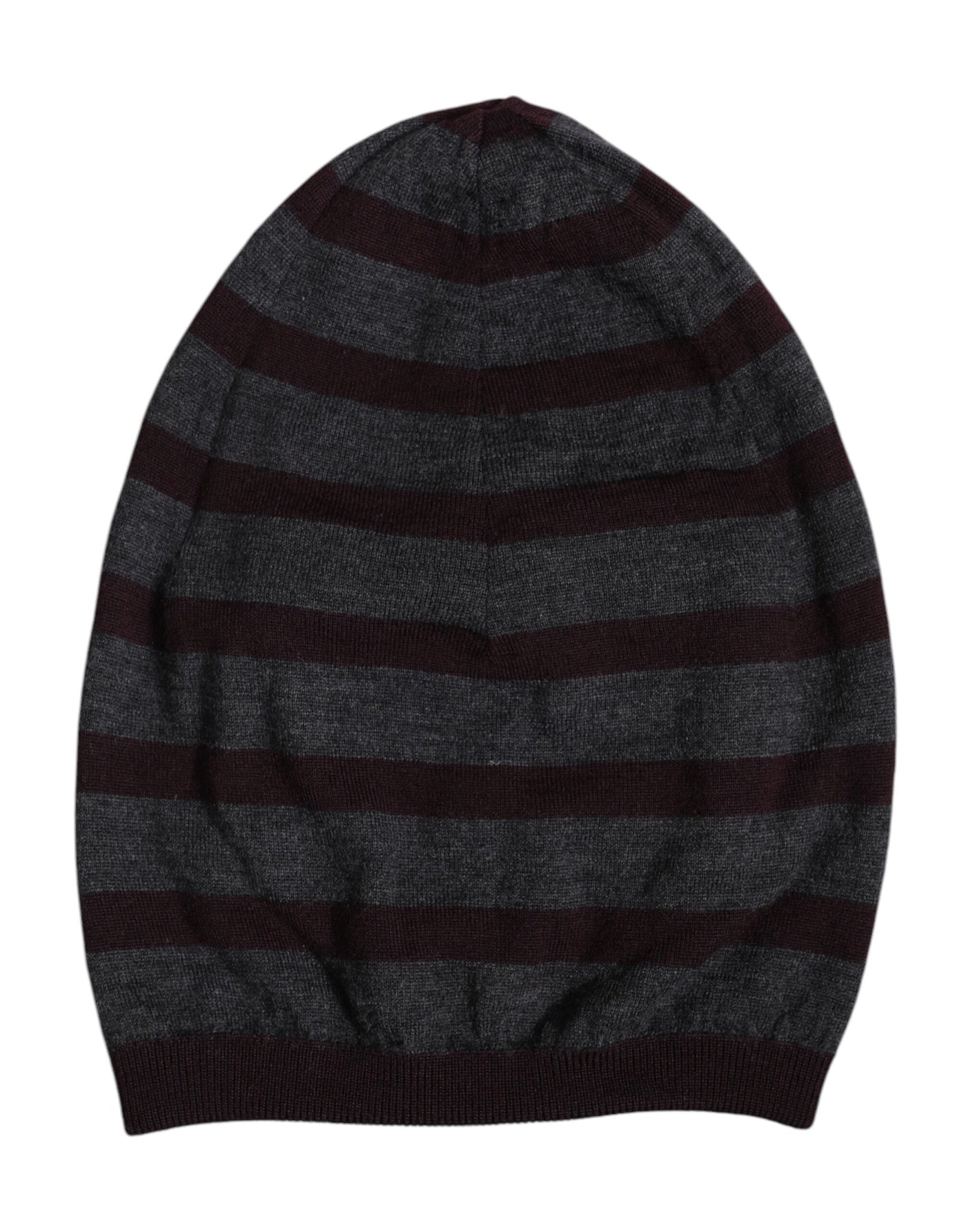 Dolce & Gabbana Graue gestreifte Wollstrickmütze Winter Beanie