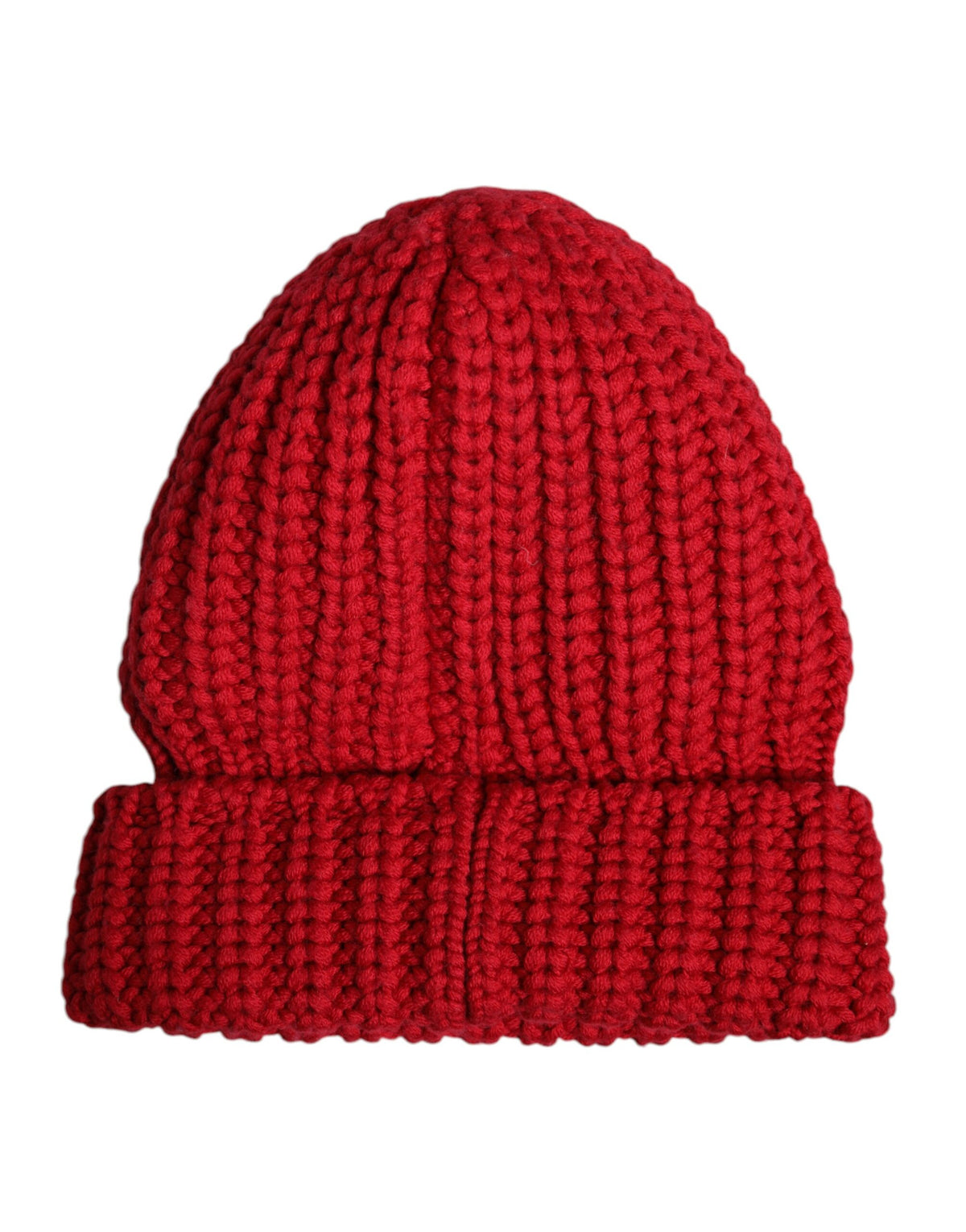 Dolce & Gabbana Rote solide Wolle gestrickt Winter Beanie Hut