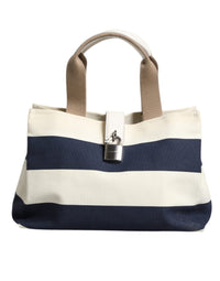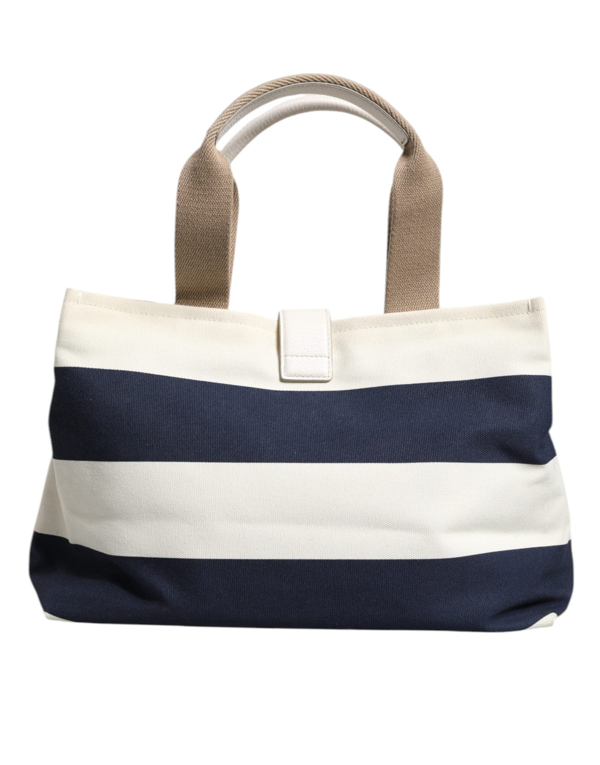 Dolce & Gabbana Weiß-Marine Gestreiftes Segeltuch Tote Tote Tasche
