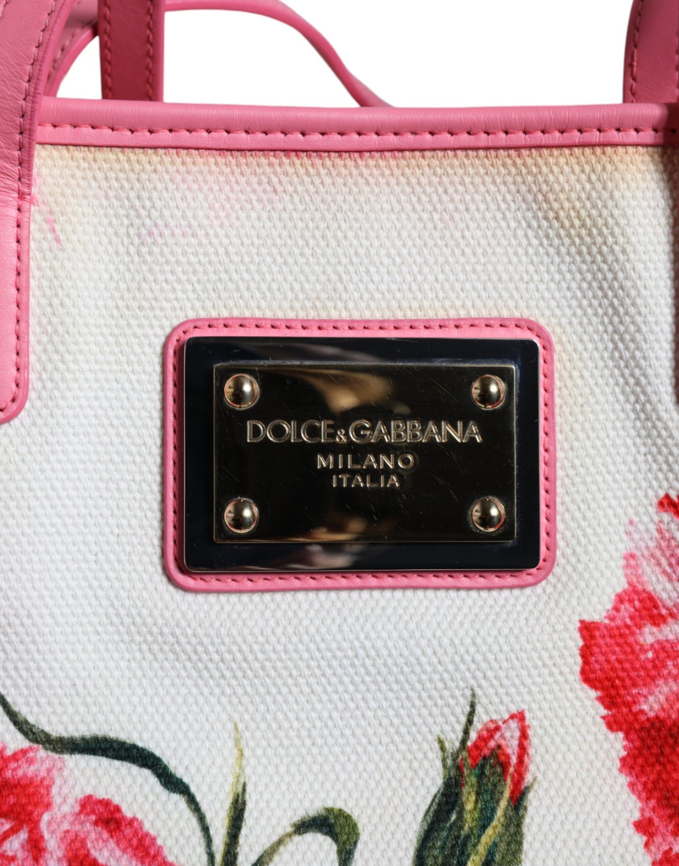 Dolce & Gabbana White Canvas Rose Embroidery Women Shopping Tote Bag