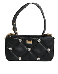 Dolce & Gabbana Schwarze Leder-Umhängetasche mit kristallbesetztem Logo