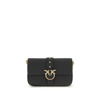Die Love One Tasche von Pinko hat einen Überschlag mit Knopfverschluss und eine Love Birds Diamond Cut Schnalle mit Nietenbesatz auf der Vorderseite. Das Design wird durch einen Schulterriemen aus Leder und einer Kette sowie antikgoldfarbene Beschläge abgerundet. Ein einziges Fach bietet sowohl Funktionalität als auch Stil.