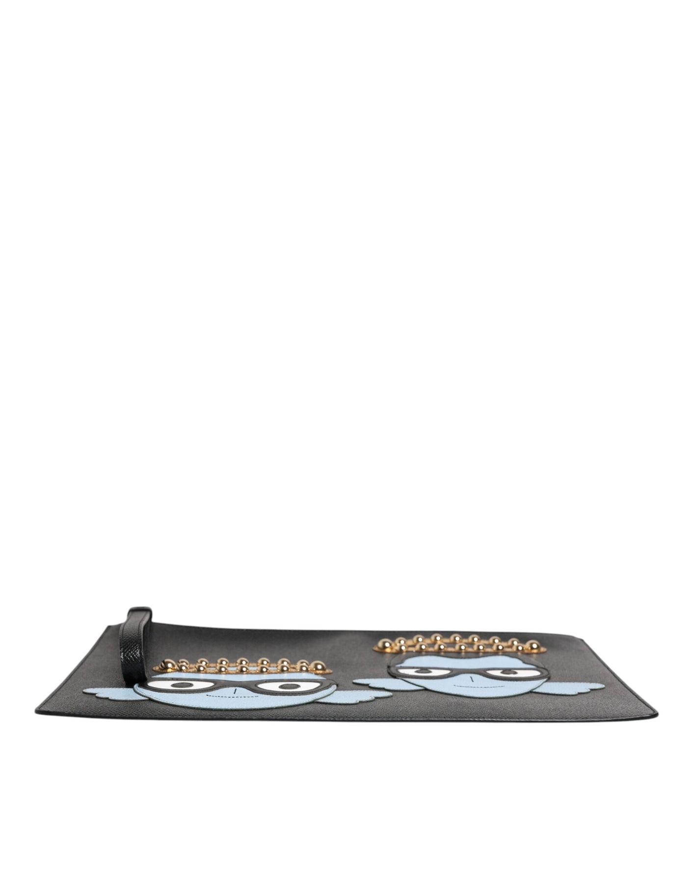 Dolce & Gabbana Schwarzes Leder #DGFAMILY verschönert Männer Zip Pouch Tasche