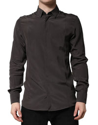 Dolce & Gabbana Dunkelbraunes Seidenhemd GOLD Herren Kleid Formales Hemd