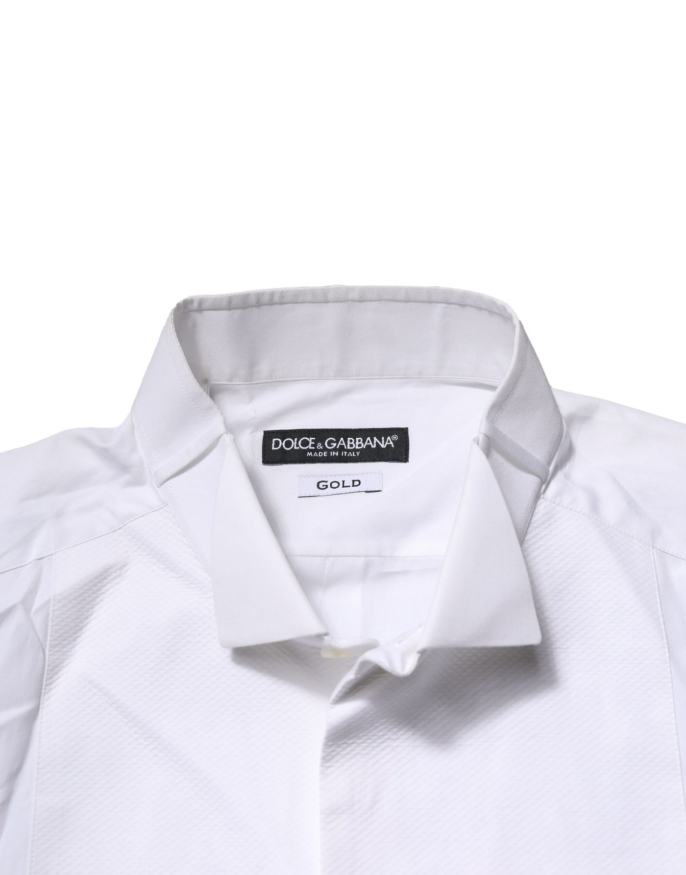Dolce & Gabbana Weißes GOLD Lätzchen Popeline Kleid Männer Formales Hemd
