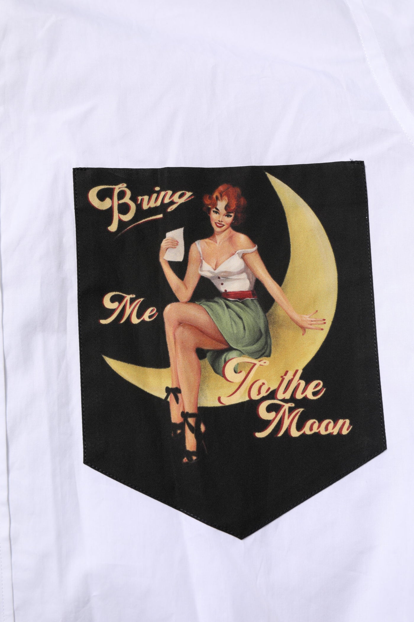 Wunderschönes, nagelneues, 100% authentisches Dolce & Gabbana Hemd mit Pin-up-Print-Tasche. Das Modell hat einen klassischen Halsausschnitt, lange Ärmel und einen Button-Down-Verschluss.