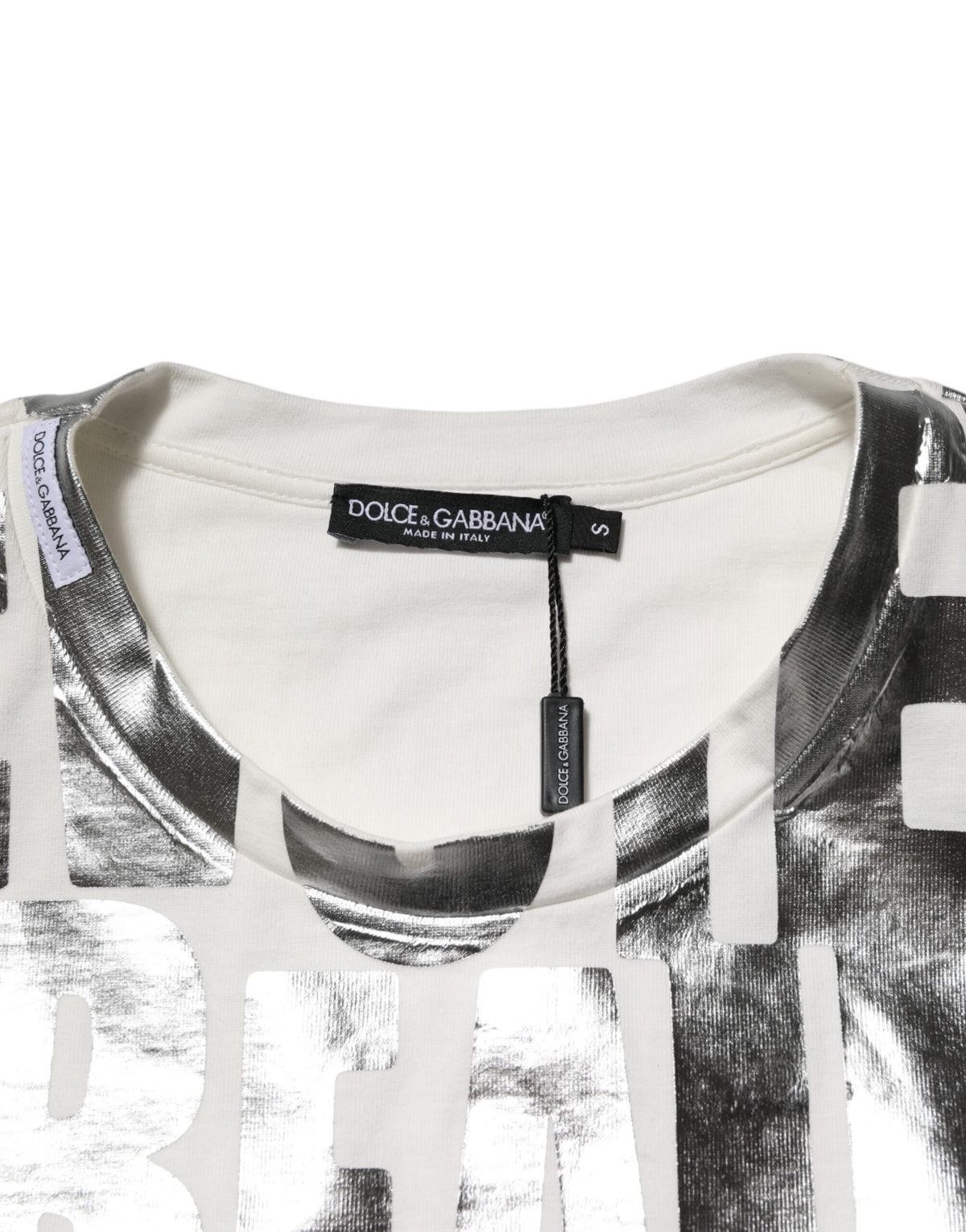 Dolce & Gabbana White metallic print cotton round neck T-shirt - IT46 | S