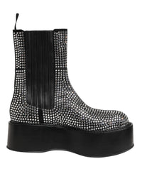 Dolce & Gabbana Schwarz Crystal Strass Mid Calf Kurze Stiefel Schuhe - EU44/US11