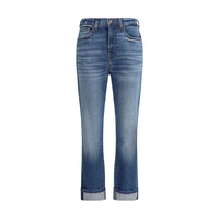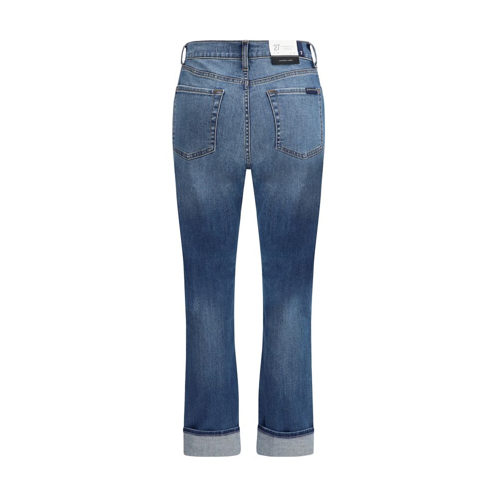 The Groovy Skinny Jeans by 7For are a versatile, modern piece with a classic five-pocket design that adds functionality and a casual touch. The zipper and buttons at the front ensure a precise fit, while the belt loops at the waistband allow for customization. The cuffs at the legs add a touch of originality and dynamism.