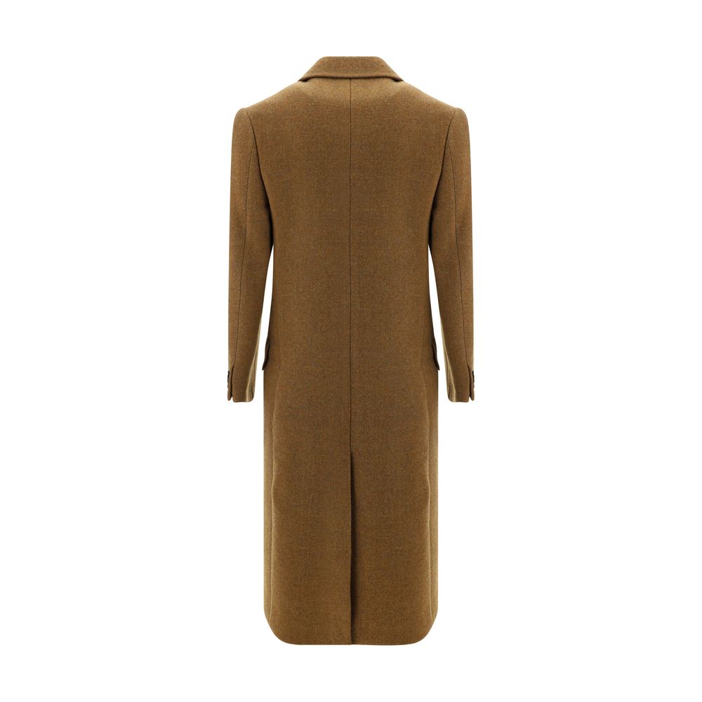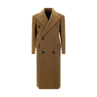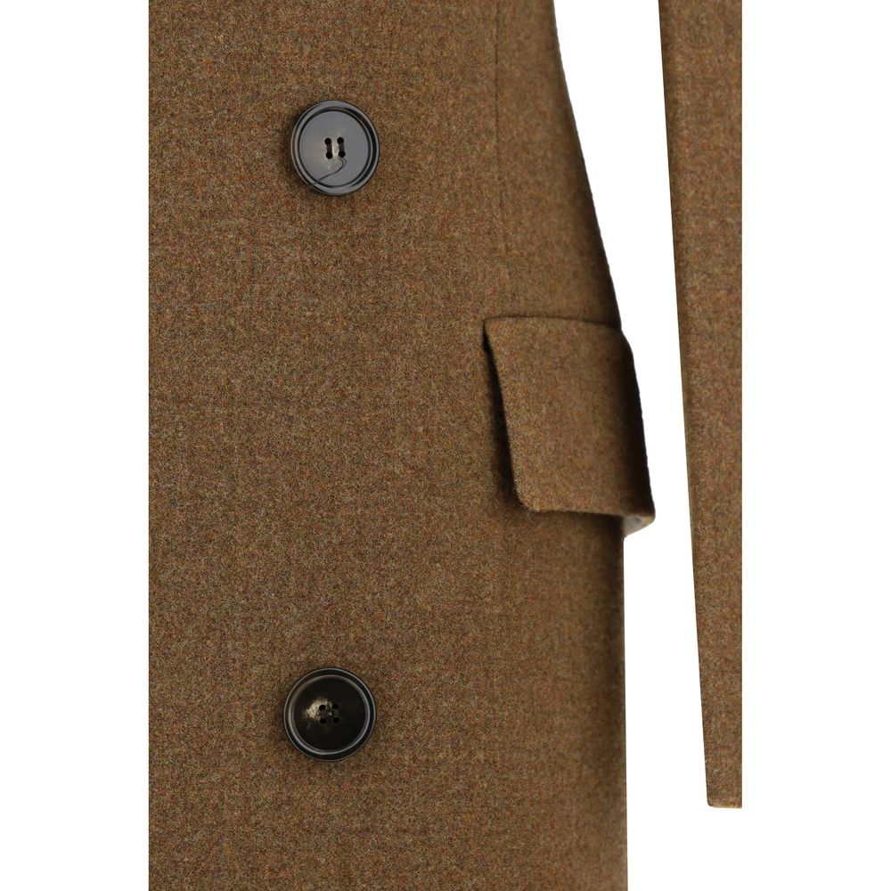 Wool coat from Burberry featuring a wide peak lapel, a double-breasted button fastening, two side flap pockets, a back vent, a melange pattern, and a regular fit.
