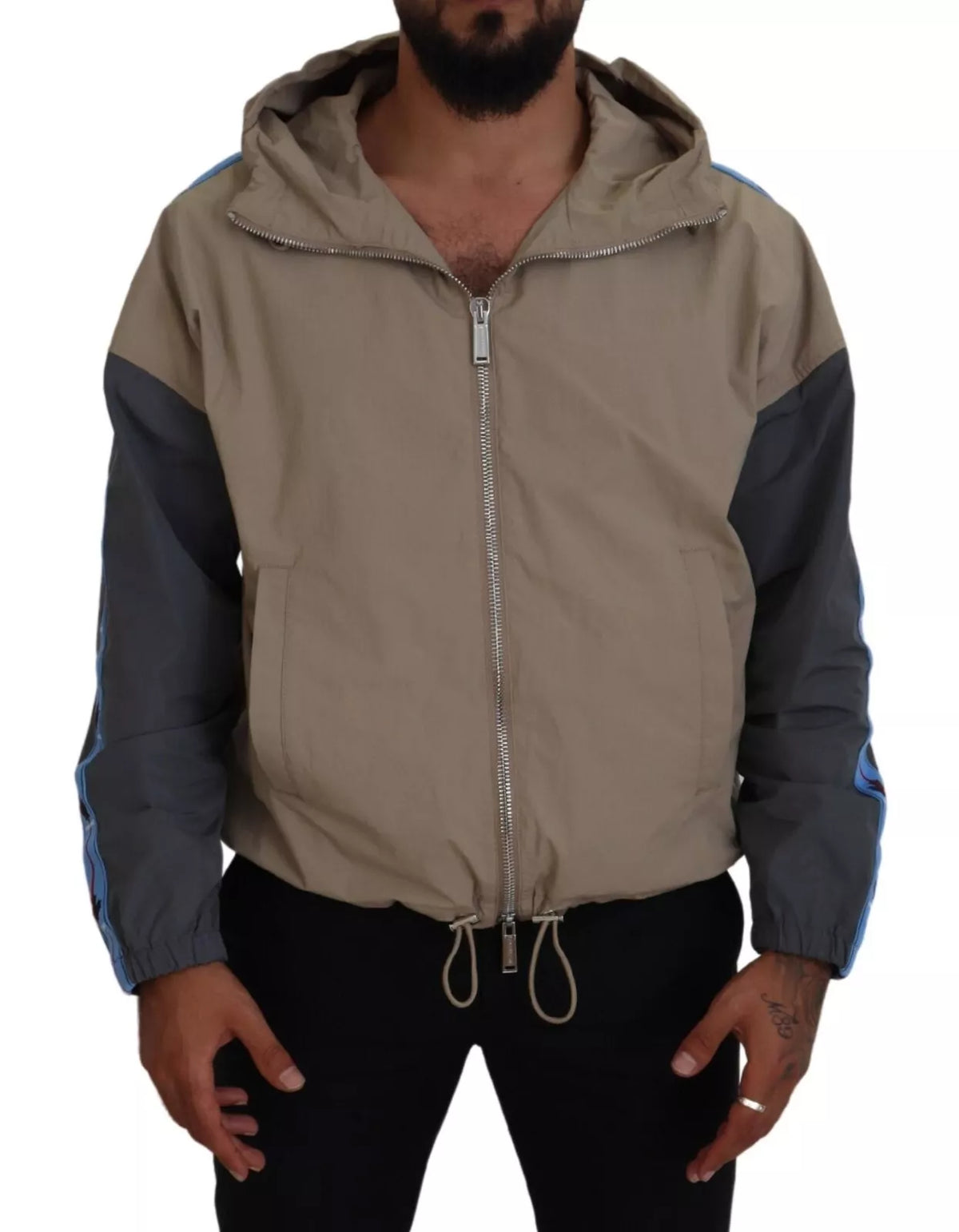 Dsquared² Brown Gray Sleeve Hooded Full Zip Jacket
