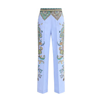 Etro's floral-print silk trousers are a masterpiece of elegance and originality, perfect for those who love sophisticated yet bold style. The high-waisted cut streamlines the figure, while the straight leg creates an elegant and flowing silhouette. The side zipper ensures a perfect fit without compromising the aesthetics of the design. The floral pattern adds a touch of color and movement to the garment.