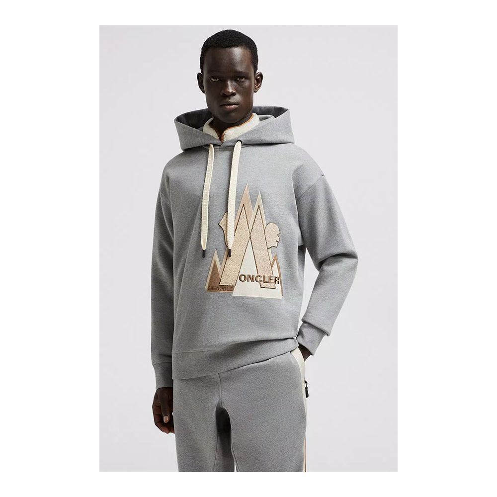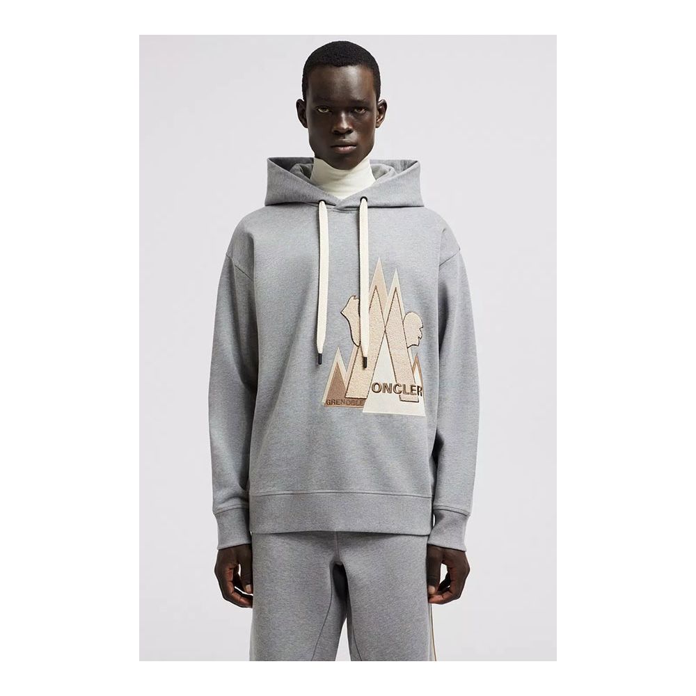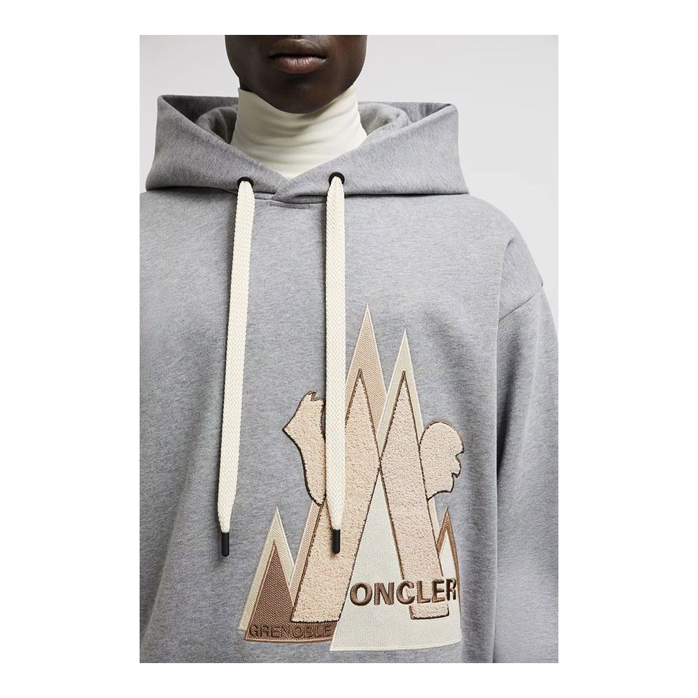 Moncler, Grenoble sweatshirt, 100% cotton color gray, with hood, embellished with drawstring and logo patch on the front.