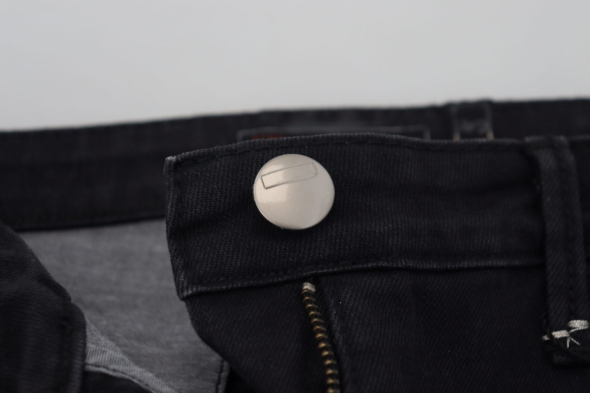 Acht Schwarz gewaschene Baumwolle Skinny Frauen Casual Denim Jeans - IT40|S