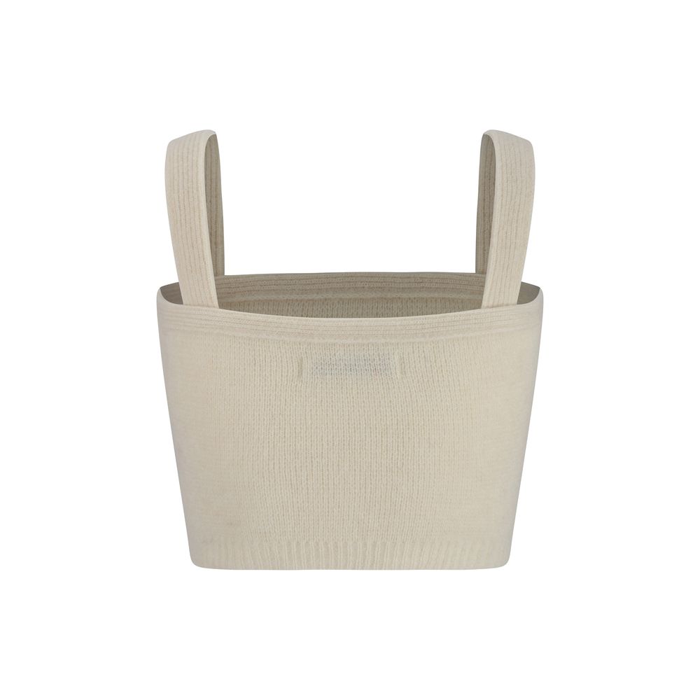 Alpakawoll-Top von Alessandra Rich, ärmelloses Design, geometrischer Ausschnitt, zwei aufgesetzte Taschen auf der Vorderseite mit kontrastierendem Detail, gerippter Saum, einfarbiges Muster, normale Passform.