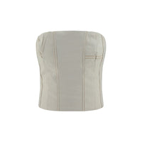 Bustier-Top von Amiri, schulterfrei, mit kontrastierenden Nähten, Reißverschluss am Rücken mit gerafften, elastischen Details.