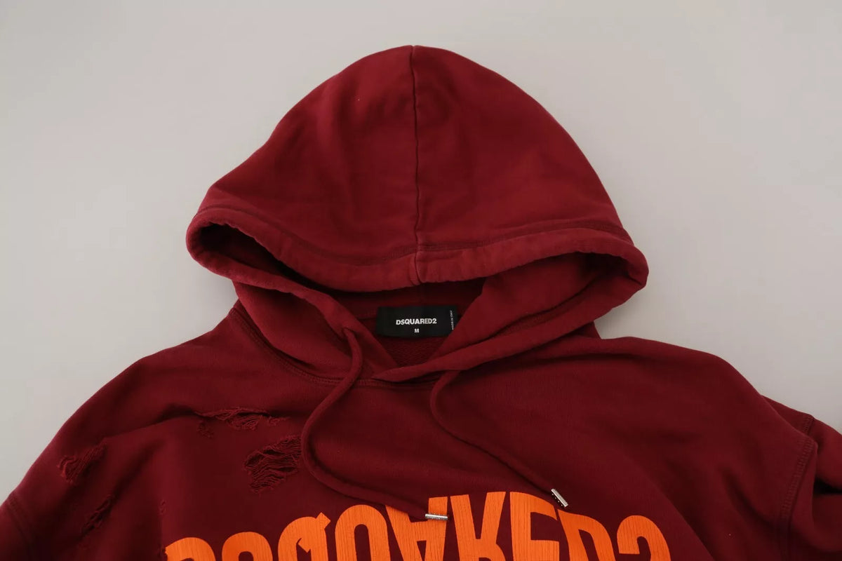 Dsquared² Maroon Cotton Tattered Hooded Printed Pullover - IT48 | M