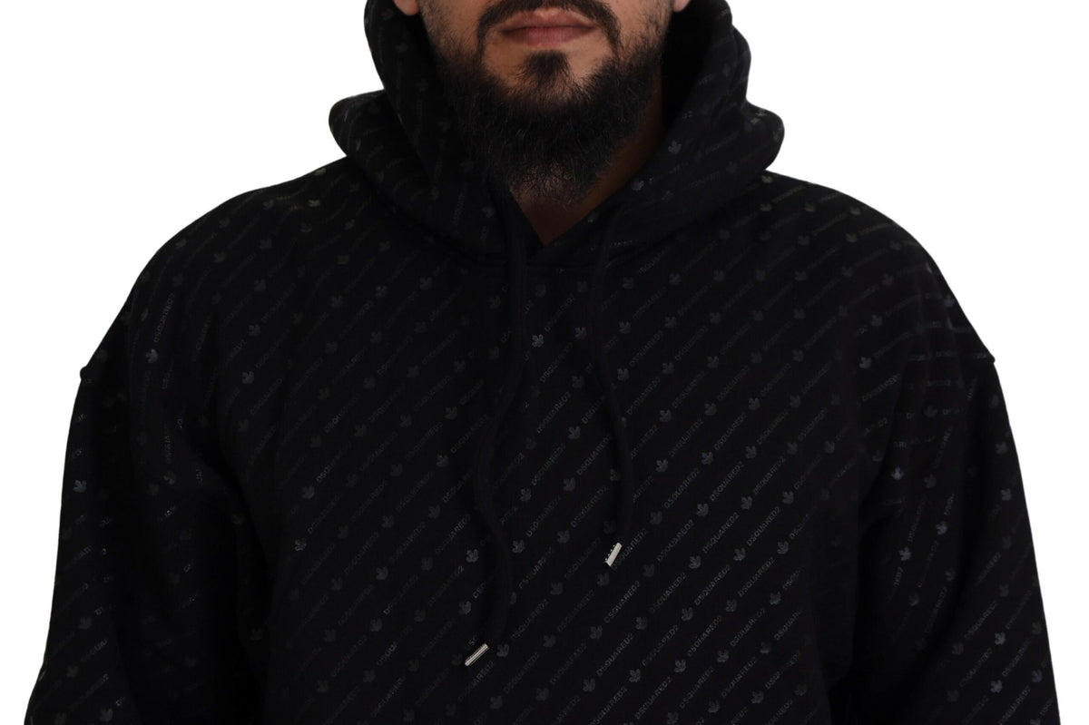 Dsquared² Schwarzer Baumwollpullover mit Kapuze, bedruckt, Herrenpullover - IT48 | M