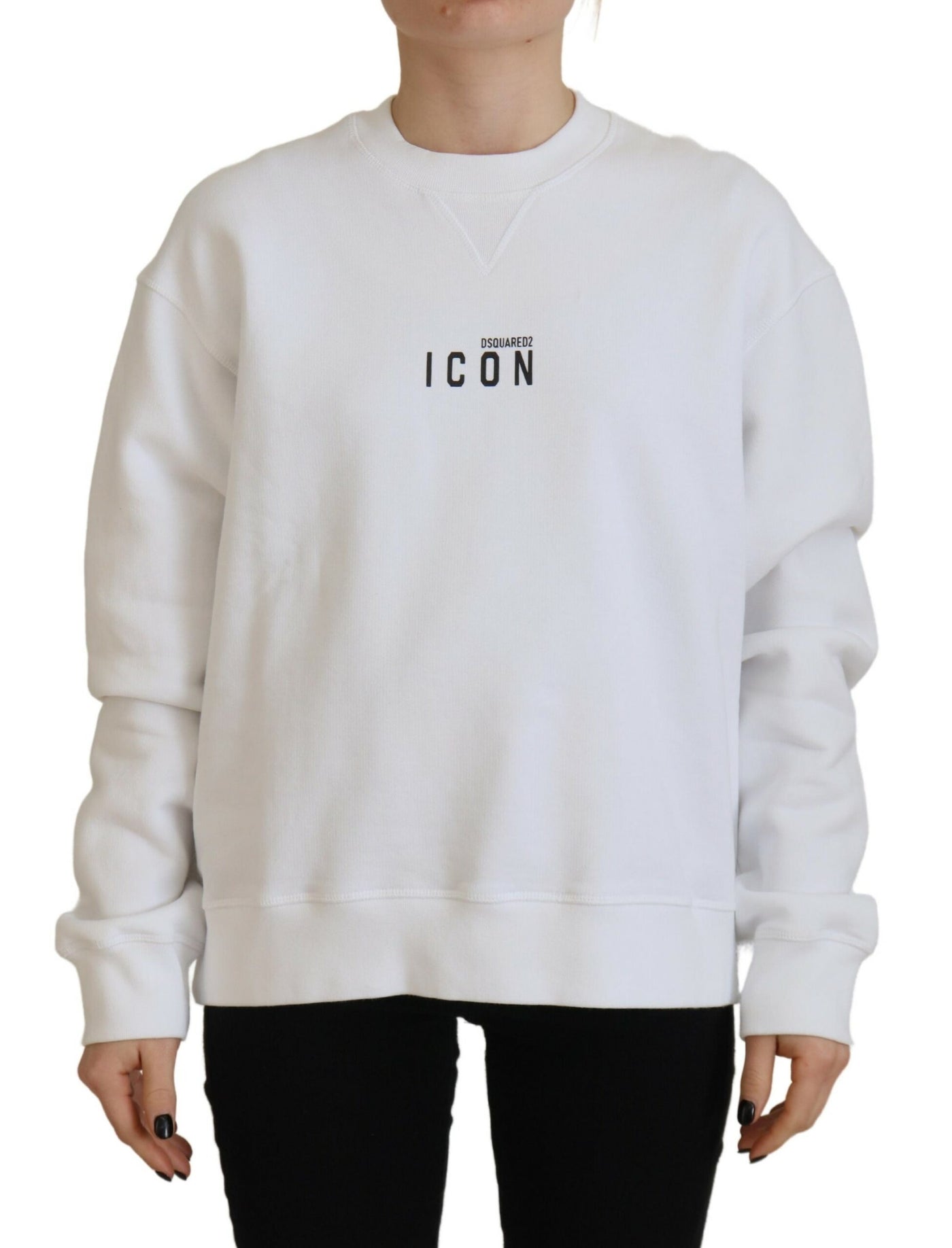 Dsquared² Weißer bedruckter Langarm-Pullover mit Rundhalsausschnitt aus Baumwolle - IT38 | XS