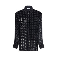 Das Devoré-Hemd aus Samt von Ferragamo spielt mit raffinierten Transparenzen und einem Gancini-Muster, das an das Erbe der Marke erinnert. Seine essentielle Konstruktion, die sich durch einen asymmetrischen, abgerundeten Boden auszeichnet, macht es perfekt für elegante Anlässe und verbindet zeitgenössischen Stil mit raffinierter Tradition.