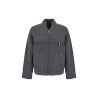 Wool Collection Cardigan von MCM, gerippter Rundhalsausschnitt, Doppelschieber-Reißverschluss, zwei Leistentaschen auf der Vorderseite, einfarbiges Muster, normale Passform.