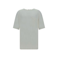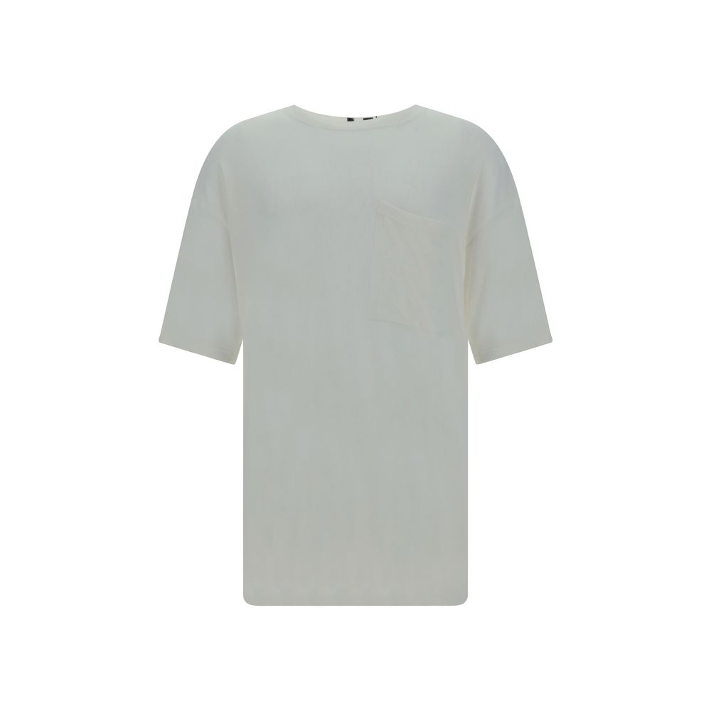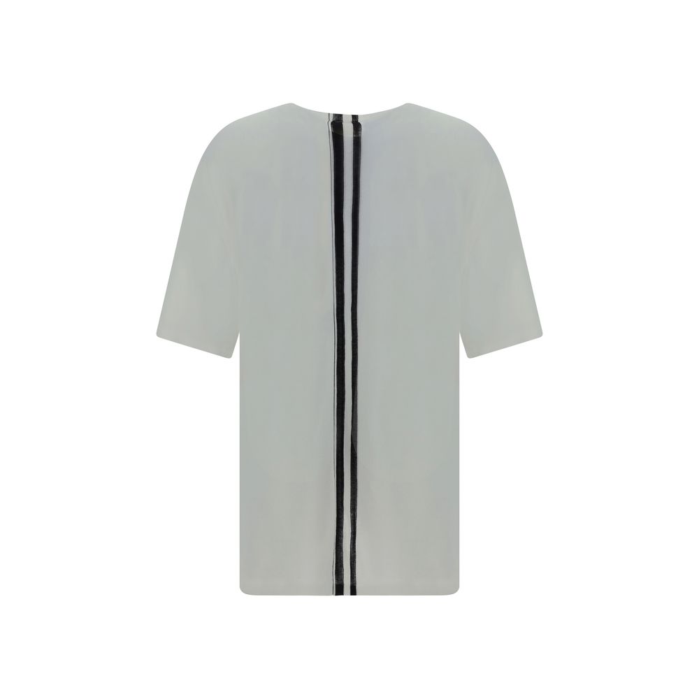 Baumwoll-T-Shirt von Mordecai, gerippter Rundhalsausschnitt, aufgesetzte Schlitztasche auf der Vorderseite, kontrastierende vertikale Streifen auf der Rückseite, monochromes Muster, Oversize-Passform.