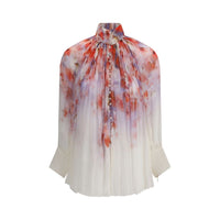 Die Crush Bluse von Zimmermann ist ein elegantes, leichtes Modell mit einem auffälligen Allover-Blumenprint. Die Knopfleiste und das halbtransparente Design verleihen dem Modell einen zarten Charme, während die drapierten Details für Bewegung und Weiblichkeit sorgen.