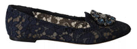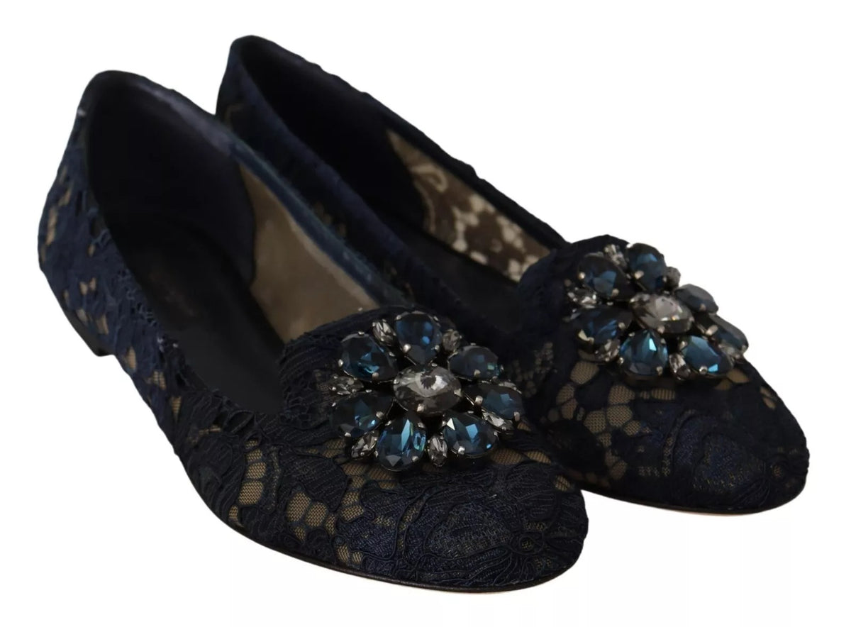 Dolce & Gabbana Blau Kristall Loafer Spitze Ballett Flats Schuhe - EU37/US7