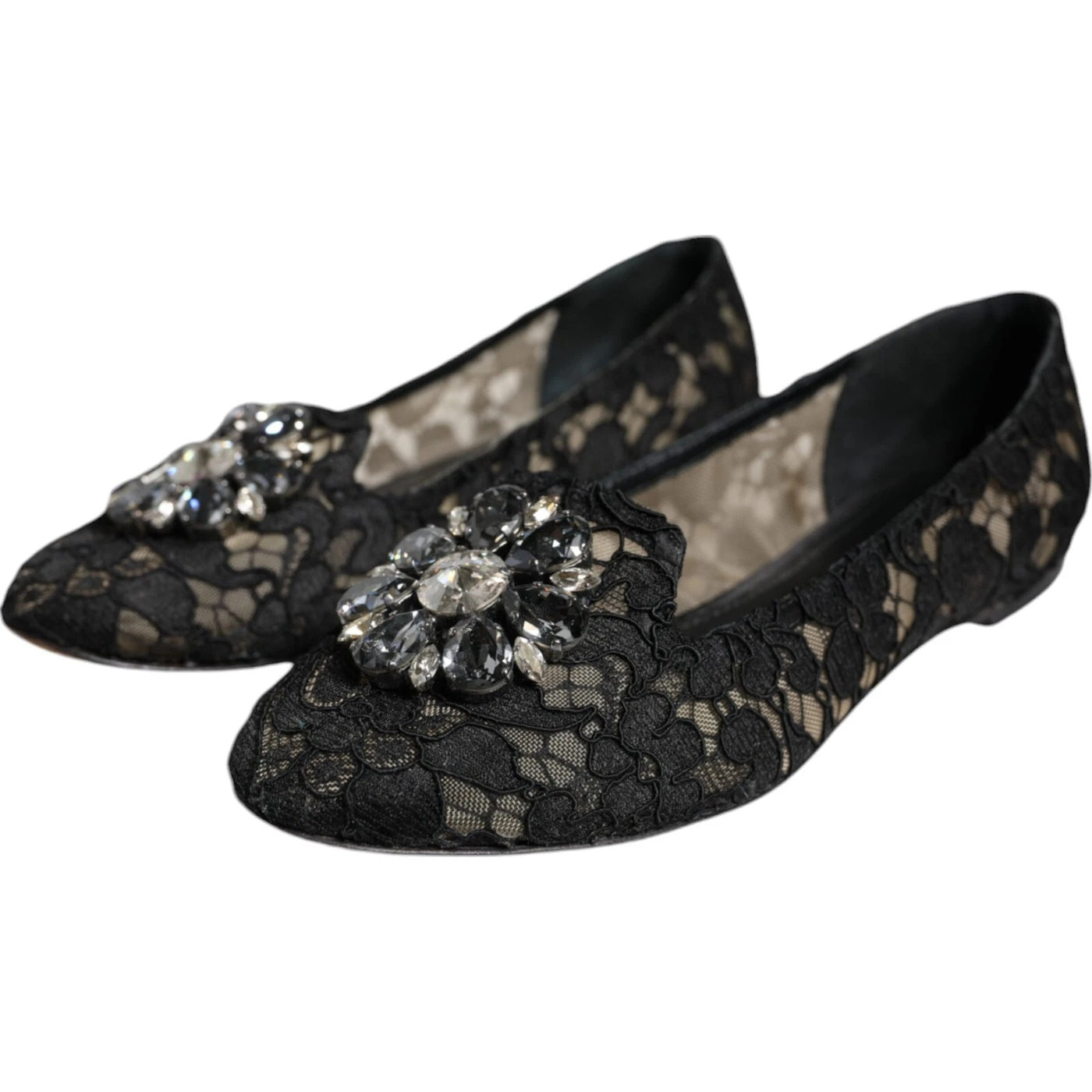 Dolce & Gabbana Siyah Dantel Kristal Bale Ayakkabıları - EU35/US4.5