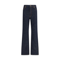 Die Danielle Jeans von Khaite in der Farbe Benson ist aus handgefertigtem Denim mit einer satten dunklen Waschung und einer Inside-Out-Spülung gefertigt, die ihr Charakter und eine Vintage-Qualität verleiht, die durch die Ozonbehandlung noch verstärkt wird. Die hochgeschnittene Passform streckt die Beine optisch und schmeichelt der Figur mit ihrer Ofenrohr-Silhouette. Abgerundet wird das Modell durch eine marmorierte Steppnaht und einen emaillierten Knopf, der raffinierte, handgefertigte Details zeigt.