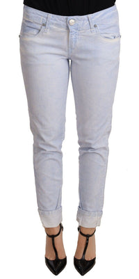 Sekiz Açık Mavi Pamuklu Katlanmış Paça Kot Dar Kadın Pantolonu - W26