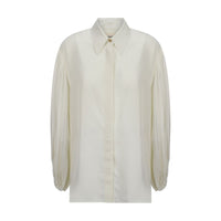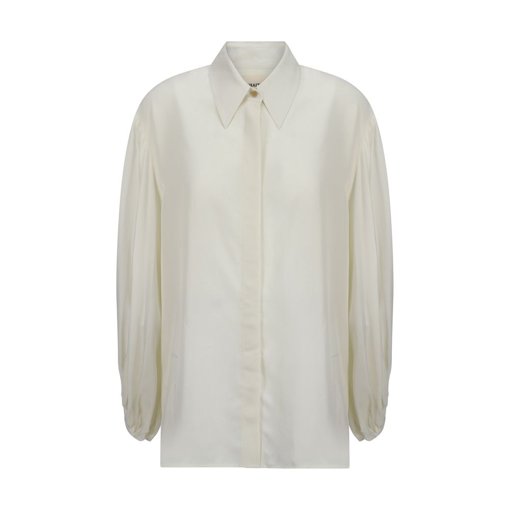 Khaite marka Bam gömlek, klasik yaka, önden gizli düğmeli, ayarlanabilir düğmeli manşetler, düz renk desen, normal kesim.